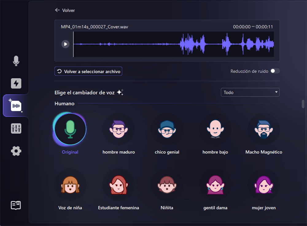Paso 3. Elige entre las voces disponibles que se muestran debajo de la pista de audio.