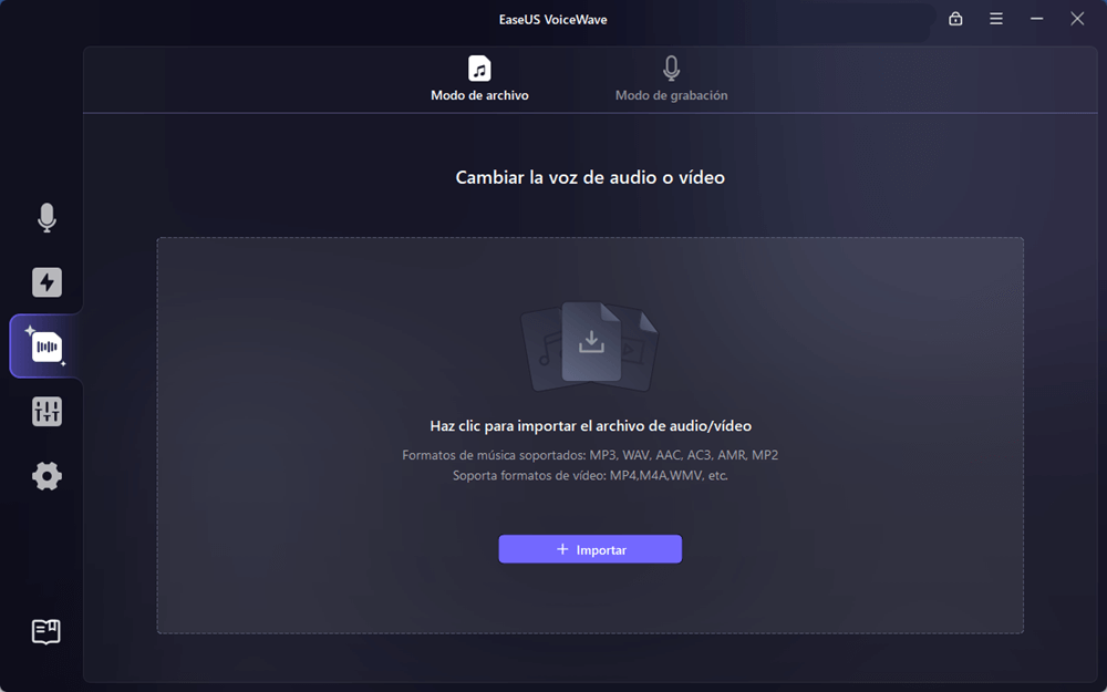 Paso 1. Abre EaseUS Voicewave en tu sistema y haz clic en "Archivo del Cambiador de Voz" en la barra de la izquierda.