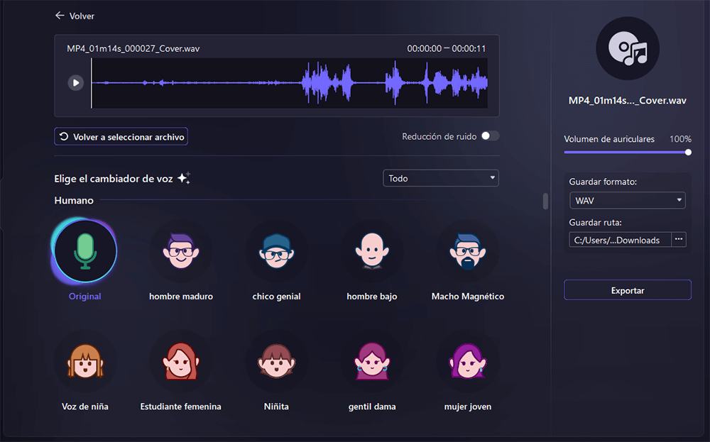 EaseUS Voicewave te permite cambiar la voz de un vídeo. Tiene varias voces incorporadas que puedes utilizar para sustituir la voz original.