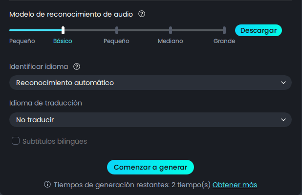 Tras descargar el modelo, selecciona si deseas traducirlo según tus necesidades y, a continuación, pulsa el botón 'Comenzar a generar'.