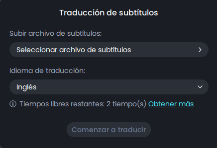 Sube los subtítulos a traducir, selecciona el idioma que desees y haz clic en el botón 'Comenzar a traducir'.