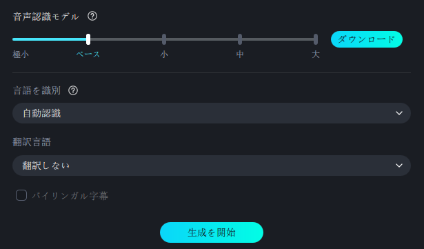 内蔵AIモデルを使ってワンクリックでビデオ字幕を生成