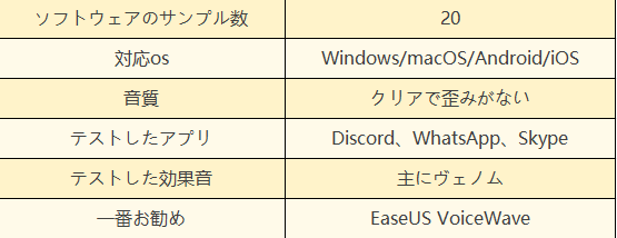 | 🎼テスト済みの音声効果 | 女性から男性、ロボット、ゾンビなど |